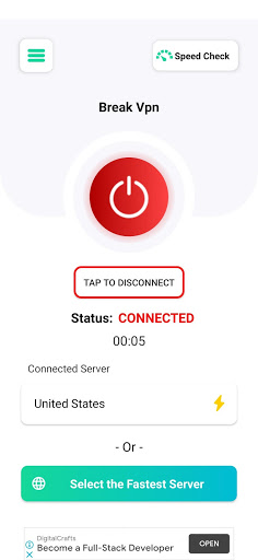 Break Vpn is a Modern app provide free vpn services. There for you not to worry about configuration, just one click, your network secure in the world.
