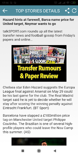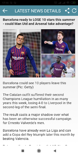 Features: - TRANSFER NEWS - BREAKING NEWS - LIVESCORES - STANDINGS - SHARE NEWS - SHARE APPLICATION Email:nguyendiemhd034@gmail.com