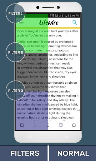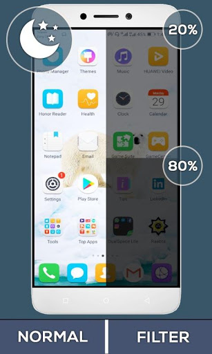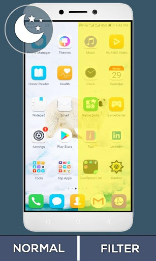Brightness dimmer night mode main goal is to reduce the brightness of your screen lower and lower, you can achieve with the default settings. This application applies an overlay filter that acts as a dimmer to darken the screen. It helps you to avoid headache and eye pain in a dark environment and at night. At night it will also help to your mobile battery life to work for long time. Color Filter Night Mode is the only application which will keep your eyes from defection and headache.