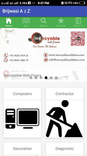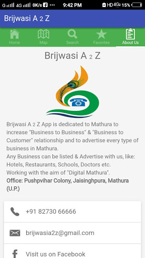 Brijwasi A 2 Z Android App is a Local Guide Android Application for the Holy City Mathura also named as Brij. Here all Brij People named Brijwasi can find A 2 Z Places, Services in Mathura. Here we provide services related to Doctors, CA, Pathology, Hotels, Restaurants, Jobs, Recruitments, Hospitals, Repairing of Home Appliances, House Rent, Hiring of Cars, Vehicles, Cheap Rates & Best Quality in all over Services and Products.