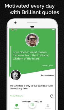 app has more than 50 Categories including Motivational quotes, Knowledge quotes, Entrepreneurship quotes, Success & Failure quotes, Funny quotes, Friendship quotes, Leadership quotes, Humanity quotes,