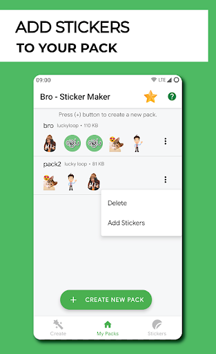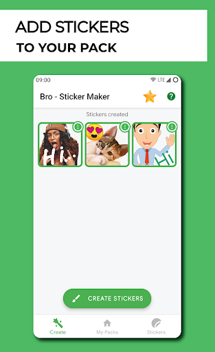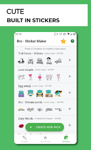 • Create stickers - Create stickers from the app and create new Sticker packs. You can find built-in sticker packs also.