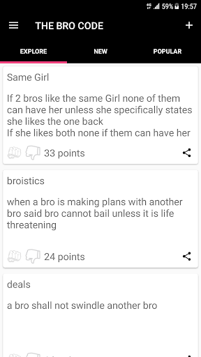 The new version of THE BRO CODE is the place to be to for all Bros to find and to share the Most Lengen....wait for it....dary BRO CODES, contributed by the Brommuntiy!