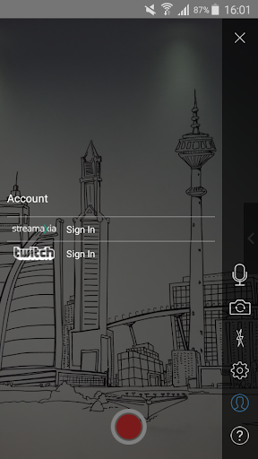 Go live on Youtube or Twitch straight from the settings menu. No need to configure anything, just login and you're live!