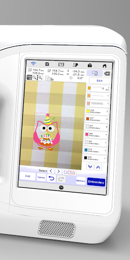 Wirelessly transfer images to your machine from your smart device with My Design Snap, a free app from Brother. Transferred images can be displayed on your embroidery machine for design placement in the hoop, or design creation in My Design Center.