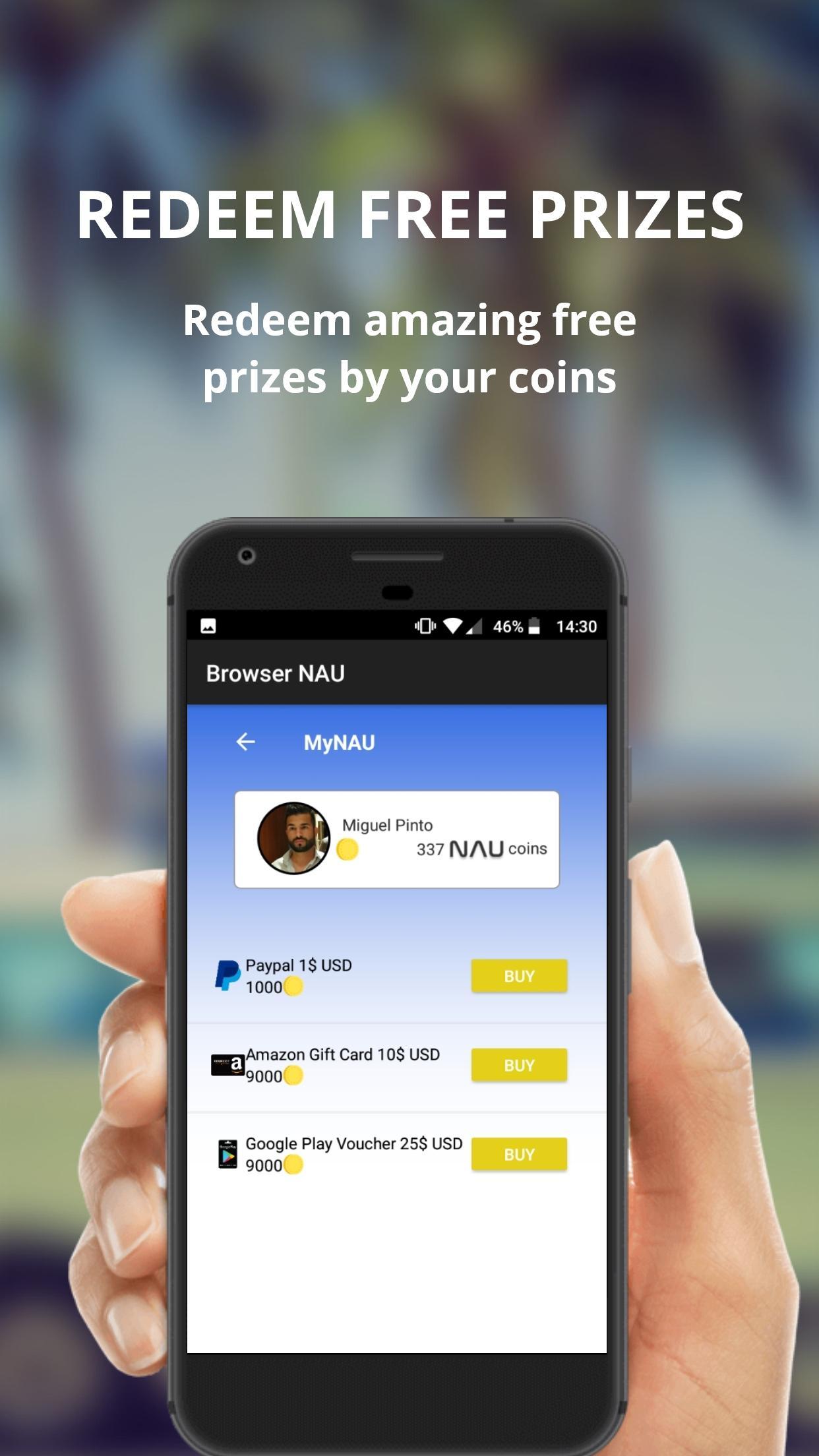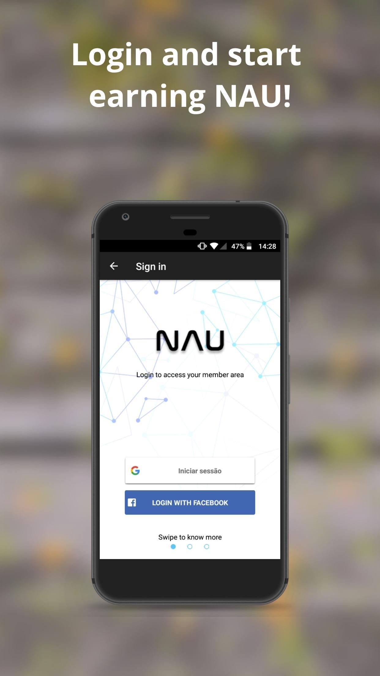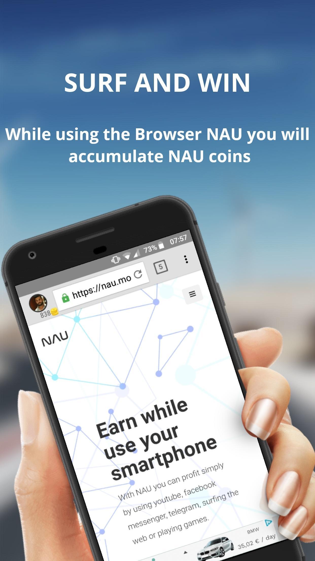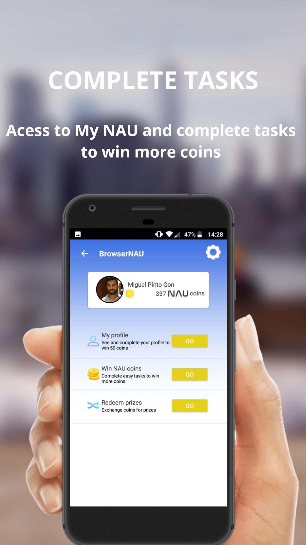 Just Login on "my NAU" inside the app and start earning NAU coins while surfing the web. This NAU coins can then be changed for money and/or rewards.