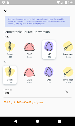 Need to substitute out single or multiple ingredients? Use the built-in fermentable source converter to see exactly how much of the other ingredient is needed!