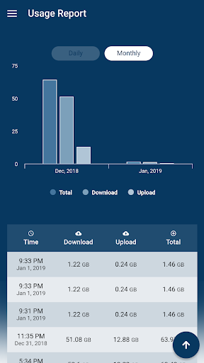 • Shows Monthly Total/Upload/Download data usage of the current bill cycle.