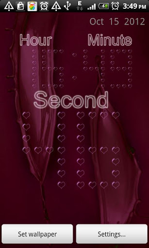 Bubble Digital clock LWP Bubble digital clock is a dynamic wallpaper type digital clock, simple, fashion, entertainment Now with " Bubble Digital Clock LWP " effect! Enable this effect in the settings screen. Increased vesicular inclusions heart & petal effect & 8 background themes.To use: Home -> Menu -> Wallpapers -> live Wallpapers To develop more free great live wallpapers, we have implemented some ads in settings.Advertisement can support our develop more free great live wallpapers. Our wallpaper contains "NO notification or icon ads"!! If you like this theme, check out our other themes. Click on "More by fish design" or search for "fish design" here in the market. Thanks for your support! More themes are still coming. Hope you like our design!For Problems and Suggestions mail to:Fishteam6@gmail comTags: Bubble Digital Clock LWP; Bubble ;Digital ;Clock ;LWP;live wallpaper; Digital Clock; LWP