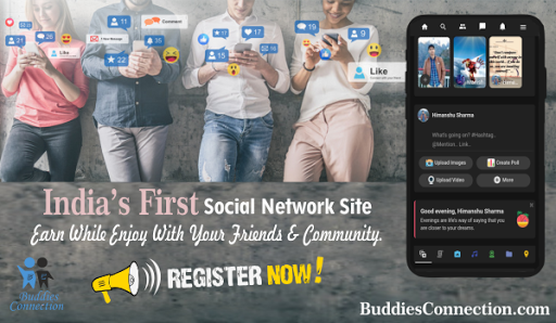BuddiesConnection is a Social Networking Platform. With our new feature, user can Like posts, photos, & Connect With Your Friends & Helps To Create New Friends, More You Can Earn While Enjoy With Your Friends & Community.