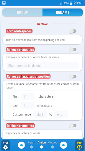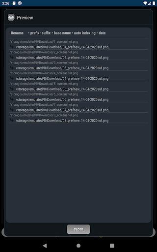 Bulk Rename & Group is a free tool which allows you to easily rename and organize all your files from internal or external storage in a single operation. Batch rename and group your selection of files with a large variety of features.