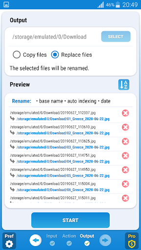 Select the output path of the new files and see a preview of the new files before starting the operation.