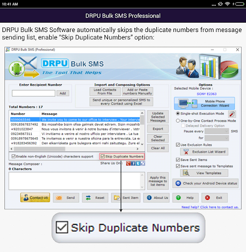 DRPU Bulk SMS Software professional Edition supports Multiple Mobile Devices as well as USB Modems for SMS Broadcasting. Now you also get Android Mobile module within Professional edition of DRPU Bulk SMS software.