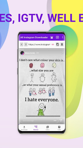 Just one click, Video Downloader for Instagram will help you download or repost your favorite videos, Stories, IG TV and pictures on Instagram. And it is 100% FREE.