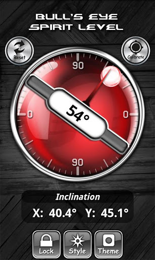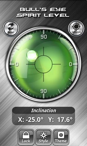 BULL'S EYE LEVEL is a precise and useful slope measurement instrument designed to measure the angle of slope, tile angle, elevation and inclination of object with respect to gravity. It works in the same way as the real traditional bubble level/Bull's Eye level, which is a circular, flat bottomed spirit level with the liquid under a slightly convex glass face to indicates the center clearly. It serves to level a surface across a plane.