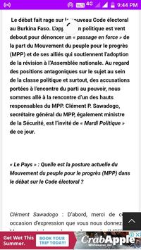 Leading daily newspaper published in Burkina Faso. The newspaper provides latest news and information on arts & culture, movies, politics, education, religion, and classifieds.