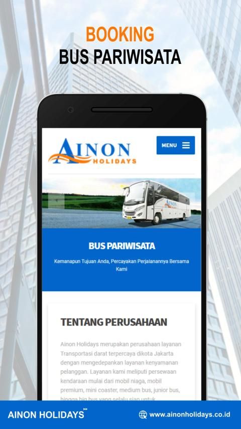 Ainon Holidays merupakan perusahaan layanan Transportasi darat terpercaya dikota Jakarta dengan mengedepankan layanan kenyamanan pelanggan. Layanan kami meliputi persewaan kendaraan mulai dari mobil niaga, mobil premium, mini coaster, medium bus, junior bus, hingga big bus yang selalu siap untuk menunjang aktivitas pelanggan.