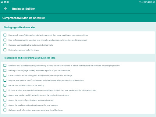 The Business Builder is a combination of book keeping and productivity tools for small businesses and aspiring entrepreneurs. The app is designed to help entrepreneurs handle the basic administration of their business. The app comes with multiple checklists and guided business activities to help you start and grow your business. We know that with limited funding during the start up phase, starting a business can be quite hectic, not to mention expensive. The Business Builder App will help you be your own bookkeeper, accountant and marketer when funds are limited.