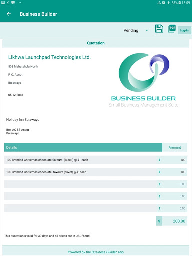 * Create PDF documents such as quotations, invoices, receipts, payment vouchers, company profiles and more.