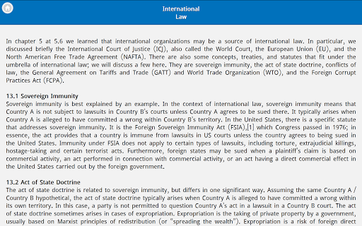 This business law application has a user friendly interface with topic searching option.