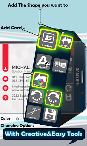 Business card maker is one of the best digital card maker app that lets you to create your own business card in just a minutes with a lot of designs and text style. You can create card in different professional design of cards and colors that will make your card like professional and stunning. You can add your logos and pictures and edit all of your personal data like name company name and create some new styles of cards in this amazing card maker app. you can add more elements to your card like photo text and symbols and save it for next step. Create your own business card like a professional graphic design with smart tools of business card maker.