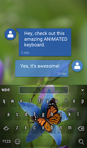 Butterfly Animated Keyboard + Live Wallpaper is an awesome personalization app that gives your Android phone a stylish new look. With Wave cool wallpapers and keyboards apps, it is easy to revamp a device in just 3 steps: