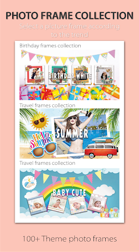 - Diversity of photo frame styles such as Happy new year photo frame, Wonderful photo frame, Happy birthday photo frame, Traveling photo frame, Summer photo frame, Sweet love photo frame, Anniversary photo frame, Family photo frame, Classic photo frame…..