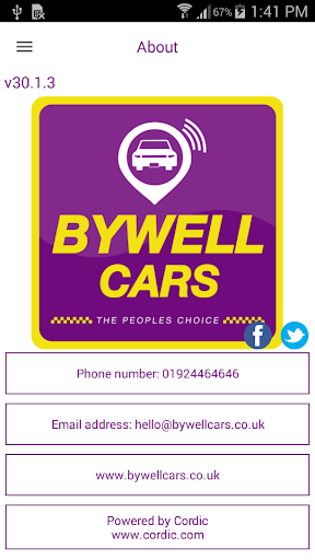This App allows you to book a Licensed Private Hire Taxi with BYWELL CARS. By Booking via the app you can now enjoy the following features:
