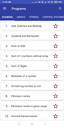 This is a very good application to enhance ur knowledge and the programs are written in such a way that easily gets understood...best app for beginners