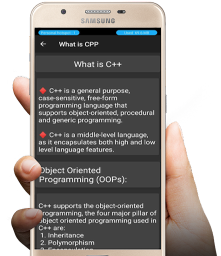 This app enables you to enhance your C Programming Language in your Android Device. It mainly contains Tutorials, Quiz, Programs, Interview Questions and Online Compiler. Whenever & Wherever you requires any information about C programming you are just a click away.