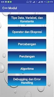 C++ modul adalah sebuah modul pembelajaran pemrograman dasar C++ yang dirancang dalam platform Android