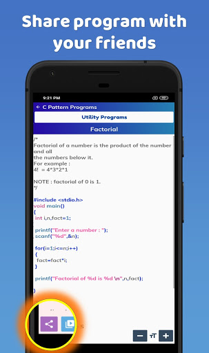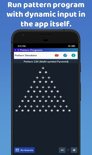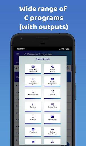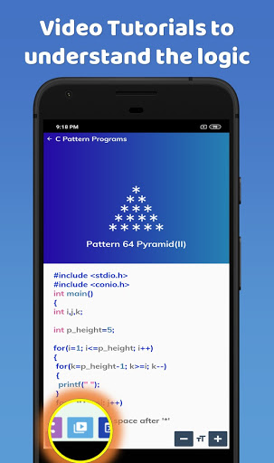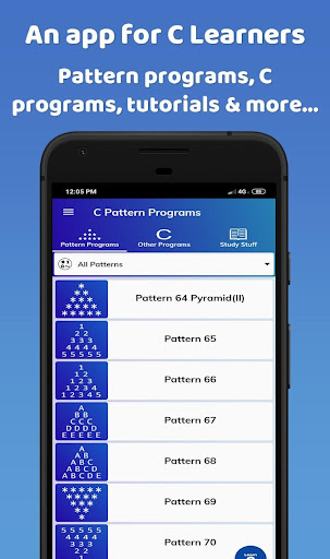 This app is full of pattern and other C programs. In addition to this, there is a lot of study stuff related to C programming as well.
