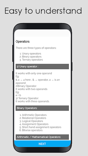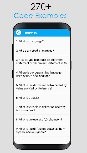 Code: only Code helps you learn faster so we have included around 275 code examples with output on covering each and every topics like Pattern programs, Recursion , for loop, if , while, do-while etc..
