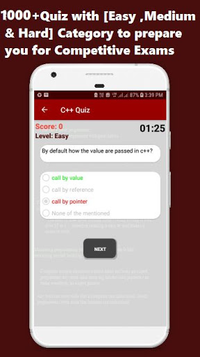 - Quiz with [Easy ,Medium & Hard] Category to prepare you for Competitive Exams.