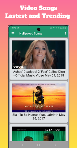 Movie trailers app also has video song collection.you can watch video song on this app