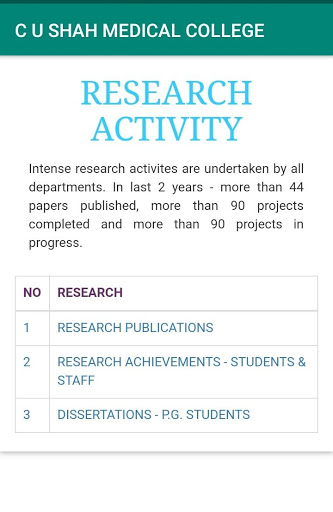 C. U. Shah Medical College established in the Year 2000 with UG and PG courses and was recognized by MCI for UG in 2005. Since, then it has progressed by leaps and bounds. P.G. Courses are being run in almost all subjects with more in the offing, in near future.