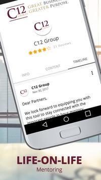 Founded in 1992 by Buck Jacobs in Tampa, Florida, C12 has grown from three local Peer Advisory Groups to the nation’s largest network of Christian CEOs, business owners, and executives. C12 is a leader in the movement of God in and through the marketplace. Located in major metro areas across the United States, The C12 Group serves businesses with 5 to 5,000 employees and annual revenues ranging from $1 million to $1 billion .