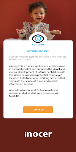 "can-eye" is a mobile application specifically designed to aid children who are suffering from low vision or are at risk of developing a visual impairment. “can-eye” was developed by engineers working in close collaboration with medical doctors, including neonatologists, ophthalmologists and occupational therapists, in order to develop functional exercises for infants and children which offer early vision-specific developmental support.