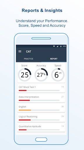 This CAT MBA app measures the Quantitative Ability (QA), Verbal Ability (VA) and Reading Comprehension (RC), Data Interpretation (DI) and Logical Reasoning (LR) prowess of the aspirants, similar to the actual Common Admission Test. The CAT Question paper app allows taking Mock tests / admission test / entry test combining all the sections or Practice Tests for a particular section. Easy to use CAT MBA also provides instant reports and lets the test taker review all attempted questions so that they can improve their performance before appearing in the act online CAT enterance Exam.