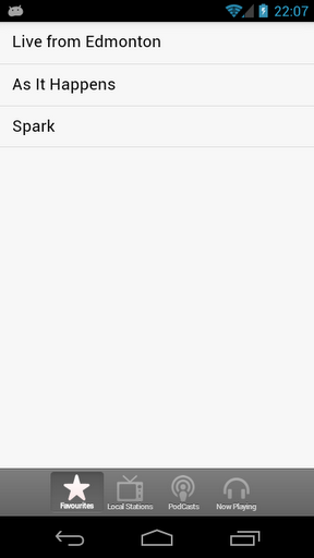 This is a barebones HTML5 application built on Sencha touch It was mainly done for fun and a proof of principle that the CBC should be supporting a more platformagnostic approach rather than developing exclusively for iOS.It provides easy, direct access to live streams and podcasts.It runs well on my one and only test device but your results may vary.You can see how it should look using Chrome or safari at http:caryan.github.comCBCRadioPlayer.Source code is available at the GitHub repository.
