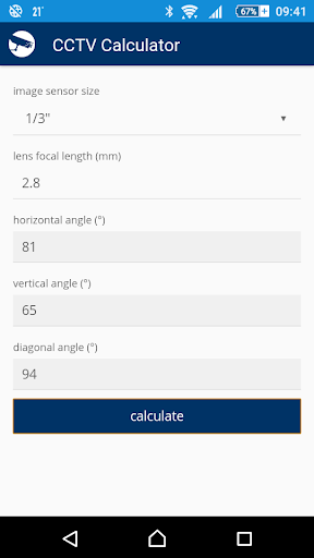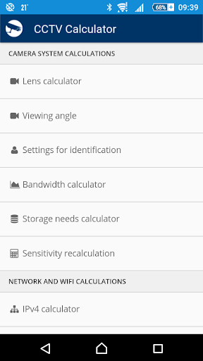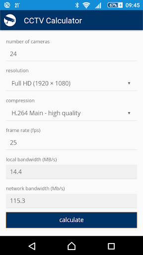 CCTV Calculator is a tool designated for camera system basic parameters determination and testing. It enables easy calculation of an appropriate focal length, camera view, IP camera bandwith, storage capacity for records archiving and of other camera system parameters.