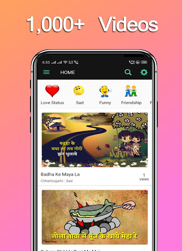 One Of The Best Chhattisgarhi video status app for whatsapp , facebook and other social media platform , you will get daily new latest sort CG Video Status to express your feeling , This app special for chhattisgarh, i hope you will enjoy this app.