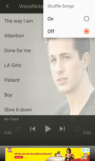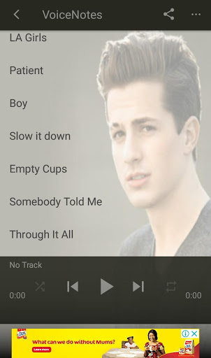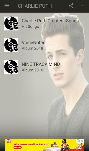 This app contains Charlie Puth's greatest songs such as; The Way I Am, Attention, LA Girls, How Long, Done For Me, Patient, Empty Cups, Through It All, One Call Away, Dangerously, Marvin Gaye. etc.