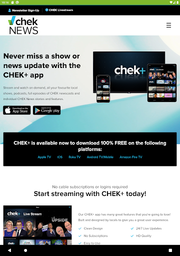 "The CHEK News app is your source for local news and information, weather, sports, an events calendar, livestreamed newscasts and much more.