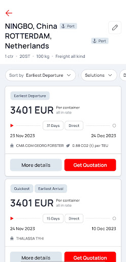 Check all of your existing quotations online or get a new instant quotation when no existing quotation is available, thanks to our pricing features. You can also benefit from our SpotOn offers to get a quotation quickly with secured spot onboard.