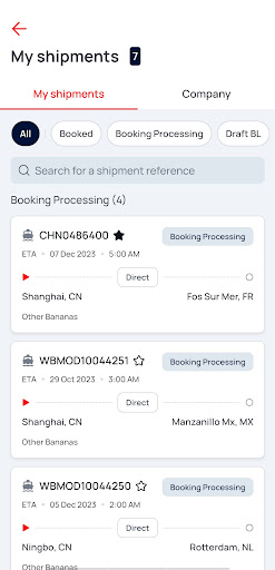 - "My containers": directly list all the containers linked to your shipments, giving you easy access (without typing) to shipment tracking.