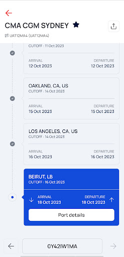 Use the CMA CGM App to search for specific vessel schedules, voyages, or use our routing finder. Directly plugged to the CMA CGM’s Information System, the App will provide information and optimized routing solutions from among more than 200 shipping lines and over 500 vessels calling 420 ports all around the world.