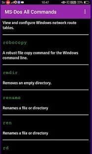 In this application all commands available for MS-DOS (cmd), In windows command prompt available to complete the task in CLI so with the help of this application you guys can learn how and which command is used to perform or complete the particular task in command line interface.