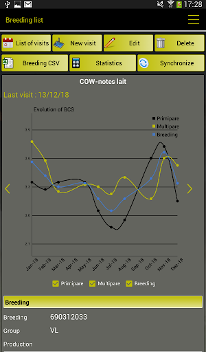 values all the assessments already conducted in the breeding, by publishing several charts (about 70) which allows each user to choose the data he favors to manage the breeding.