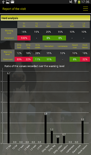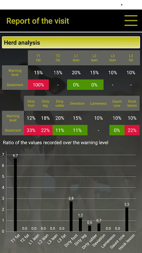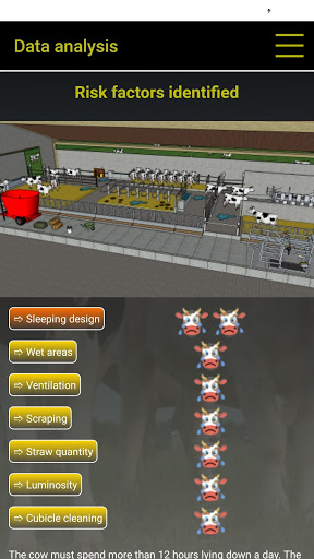 There are risk factors, expressed by animals, concerning mastitis, lameness, energy deficit, reproduction and production disorders which are explored. Less than 15 minutes are necessary to assess 20% of the herd, this constitutes a representative sample.